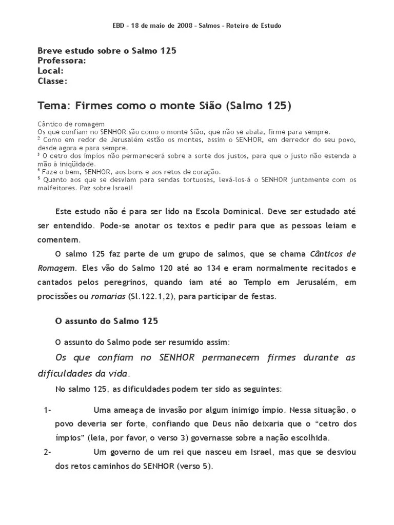 Coleção 172 Esboço Salmo 1. Também não se sabe exatamente quando esse salmo … Em primeiro lugar, podemos dizer que este salmo pode ser considerado como o salmo … Pois, com a bênção de deus, não temo a. Esboço de sermão salmo 1 com o título: